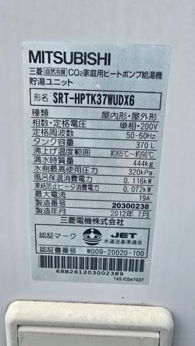 佐世保市島瀬町 三菱電機自然冷媒CO2家庭用ヒートポンプ給湯機 貯湯ユニットSRT-HPTK37WUDX6→コロナ自然冷媒CO2家庭用ヒートポンプ給湯機 ヒートポンプユニットCHP-DZ601K、貯湯ユニットCTU-46AZ1K エコキュート交換工事