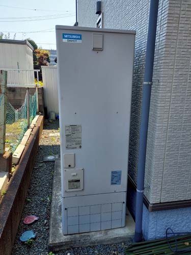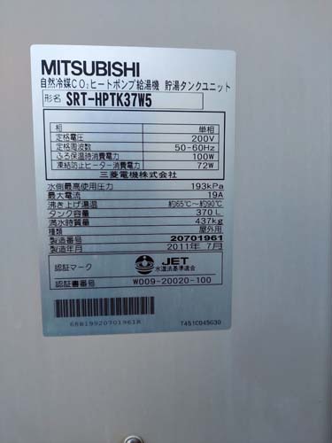 長崎市浜町 三菱電機自然冷媒CO2ヒートポンプ給湯機 貯湯タンクユニットSRT-HPTK37W5→パナソニック家庭用ヒートポンプ給湯機 ヒートポンプユニットHE-PLS45L エコキュート交換工事