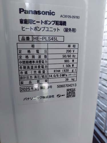 長崎市浜町 パナソニック家庭用ヒートポンプ給湯機 ヒートポンプユニットHE-PLS45L エコキュート交換工事