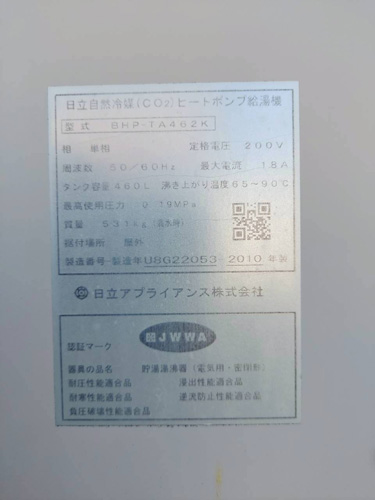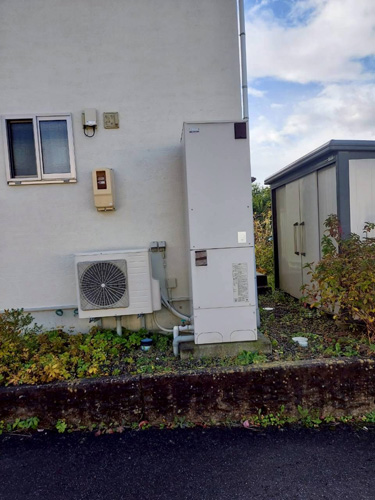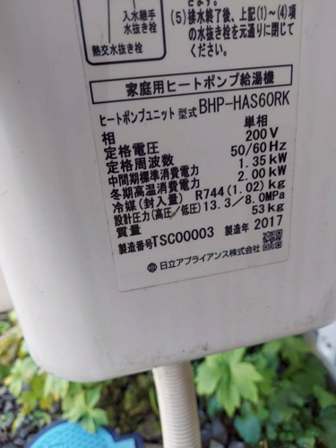 島原市坂上町 日立家庭用ヒートポンプ給湯機ヒートポンプユニットBHP-HAS60RK、自然冷媒CO2ヒートポンプ給湯機BHP-TA462K→コロナ自然冷媒CO2家庭用ヒートポンプ給湯機ヒートポンプユニットCHP-DZ451K エコキュート交換工事