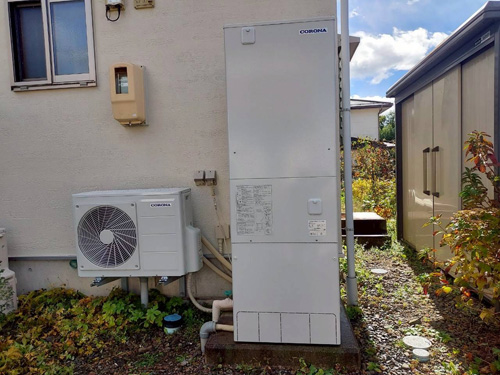 島原市坂上町 コロナ自然冷媒CO2家庭用ヒートポンプ給湯機ヒートポンプユニットCHP-DZ451K エコキュート交換工事